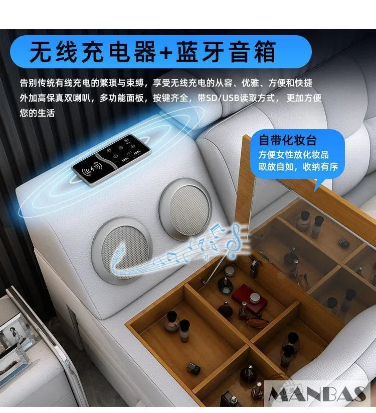 MINGDIBAO Tech Smart Genuine Leather Bed | Multifunctional Ultimate Beds | Massage Tatami Bed with Projecter | Upholstered Cama